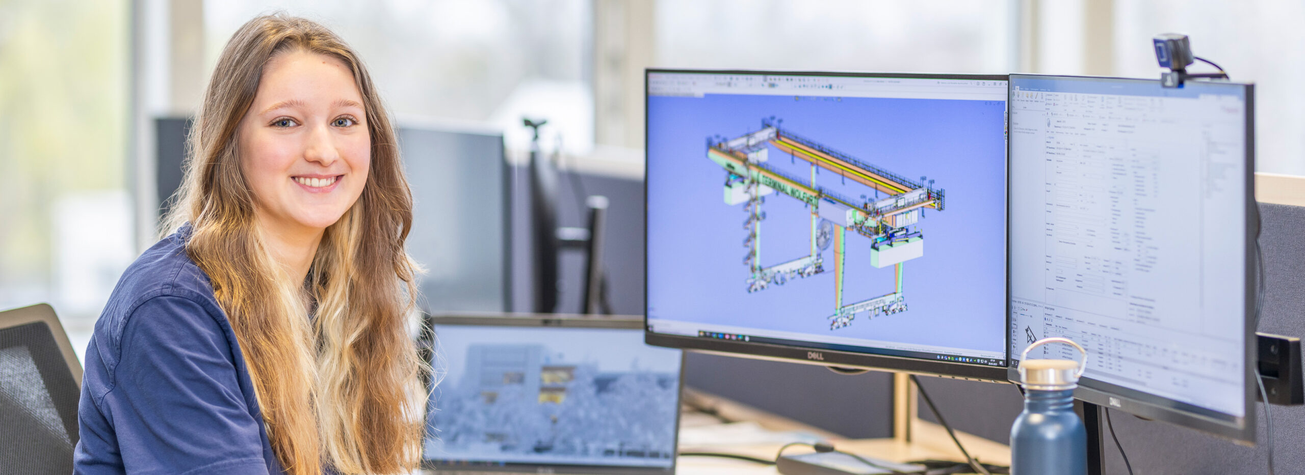 Als Konstrukteur/in arbeitest du vor allem am Computer mit einem modernen 3-D CAD System und erstellst Zeichnungsmodelle und Baugruppen. Du lernst dabei Pläne genau und präzise zu zeichnen. Anhand deiner Pläne werden dann die Baugruppen gefertigt.